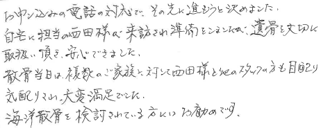 ご遺骨のお迎え時、ご家族様もきっとご不安のなか担当者を迎えてくださったと思います。