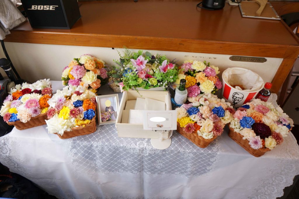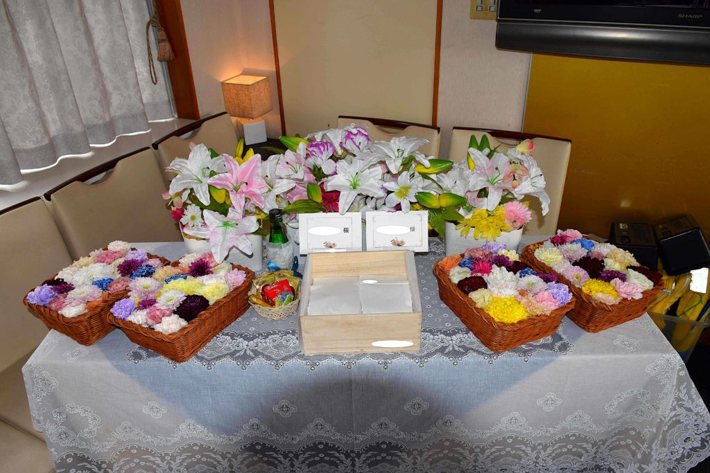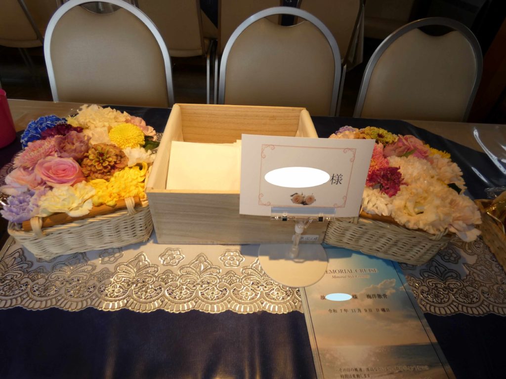 乗船者様も多くなることが多く、季節の生花で作る献花も華やかですね。