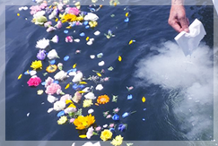 家族(個人)散骨や合同散骨の場合、ご遺族様はじめ故人様とお付き合いのあった方々が乗船されることが多いのですが、海にお骨を撒くのは、一瞬で、あっと言う間に終わってしまいます。